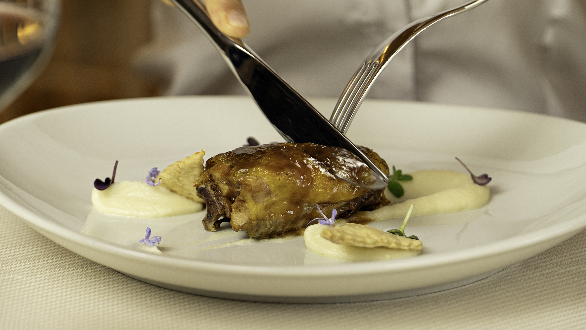 Una cucina garbatamente creativa dove la carne è la regina, ma che lascia spazio anche al pesce per arricchire quella che immaginiamo come un’esperienza culinaria e sensoriale alla scoperta di abbinamenti inediti che mescolano sapori e materie prime di tutta Italia. Terra e mare si alternano quindi ma molto spesso si rincorrono e si completano per offrire anche accostamenti inediti. Il nostro menù cambia due volte l’anno per seguire le stagioni. Usare gli ingredienti quando sono realmente disponibili in natura ci permette di esaltarne il sapore, garantire la qualità e avere prodotti a chilometro zero. Erbe aromatiche e fiori eduli coltivati direttamente da noi aggiungono note gustative e cromatiche che rendono i piatti accattivanti e da scoprire.